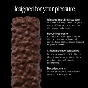 Núcleo esponjoso con sabor a masa de galleta, con notas de azúcar moreno, mantequilla y vainilla. Capas de ganache de caramelo y crujientes. Bañado en cobertura con sabor a chocolate.