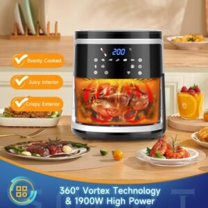 Potencia alta de 1900W, reduce el tiempo de cocci¨®n en comparaci¨®n con otras freidoras de aire