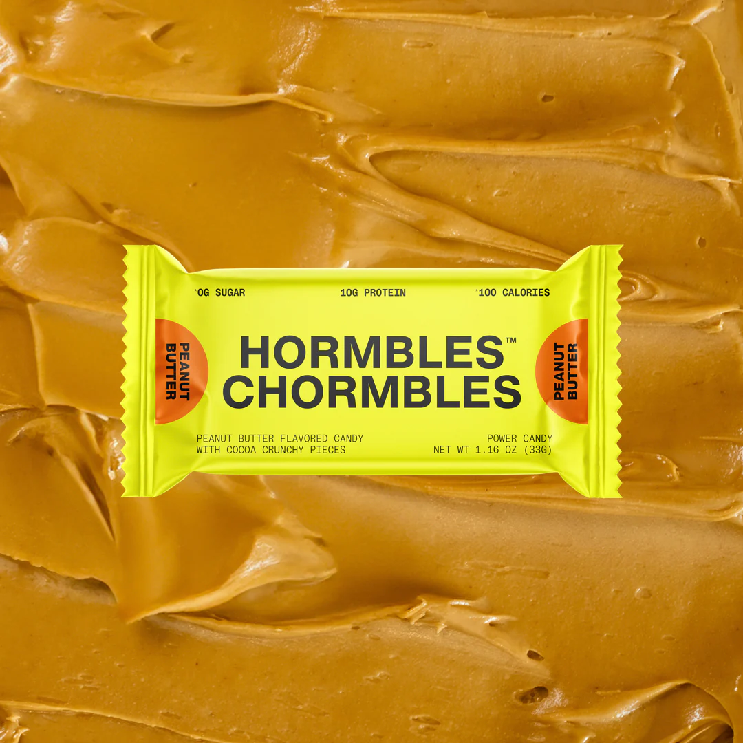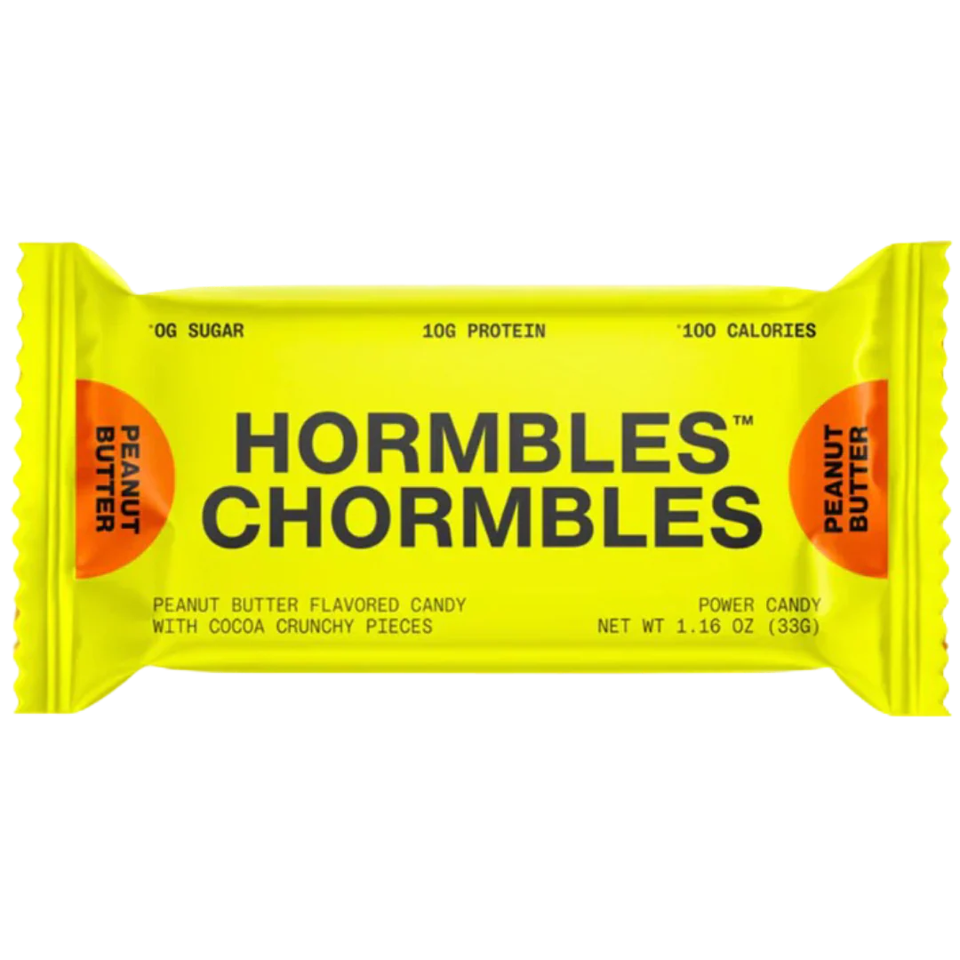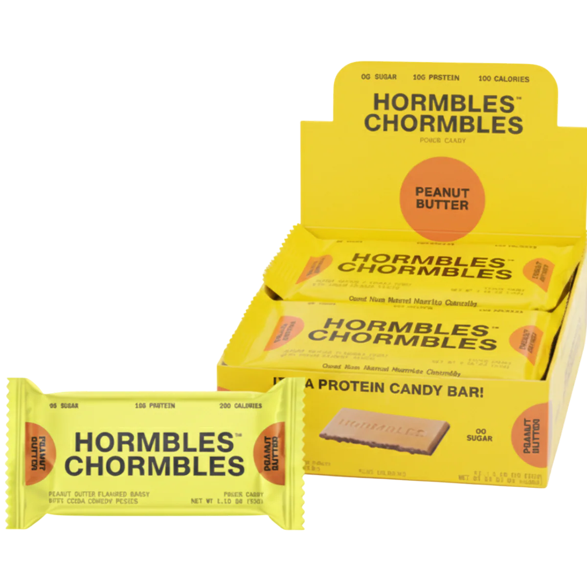 Las barritas proteicas de mantequilla de cacahuete Chormbles de Hormbles ofrecen un cremoso sabor a mantequilla de cacahuete combinado con crujientes trocitos de cacao para disfrutar de un tentempié irresistible. Cada barrita aporta 10 g de proteínas, 0 g de azúcar y 100 calorías, lo que la convierte en una golosina que satisface y reduce el sentimiento de culpa, equilibrando sabor y nutrición.