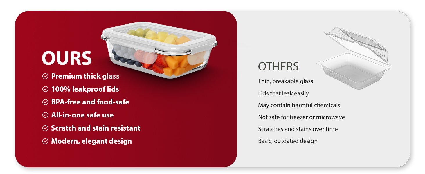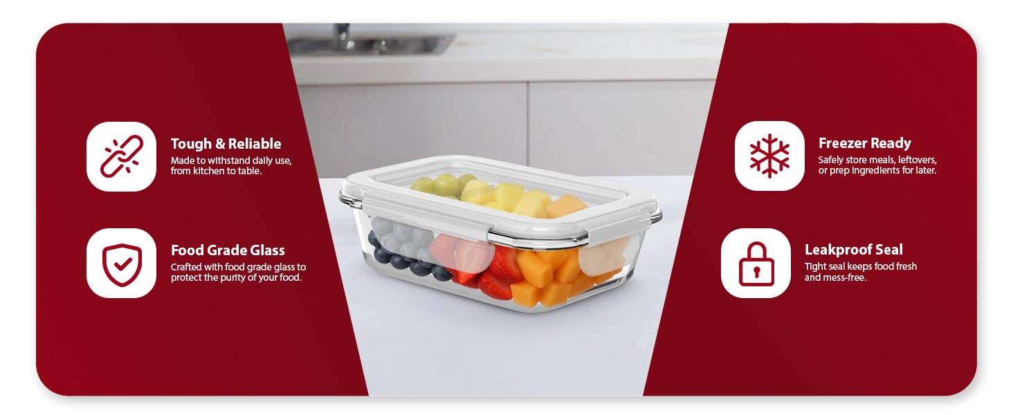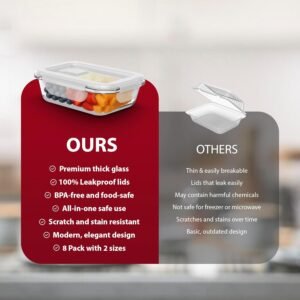 • TAPAS AISLANTES PARA MÁXIMA FRESCURA - Cada recipiente cuenta con una tapa de cierre a presión y un sello de silicona para mantener el contenido fresco y evitar fugas o derrames. Estos recipientes de vidrio con tapa son perfectos tanto para uso doméstico como para llevar a todas partes.