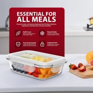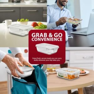 • IDEALES PARA LA PREPARACIÓN DE COMIDAS, LA COCCIÓN EN LOTES Y MÁS - Ya sea para guardar las sobras, organizar tus comidas semanales o preparar almuerzos para el trabajo, estos recipientes de vidrio para la preparación de comidas ofrecen un rendimiento fiable para el día a día. Una solución imprescindible para cualquiera que desee comer mejor y mantenerse organizado.