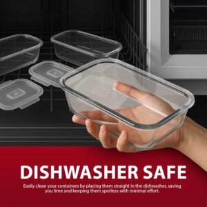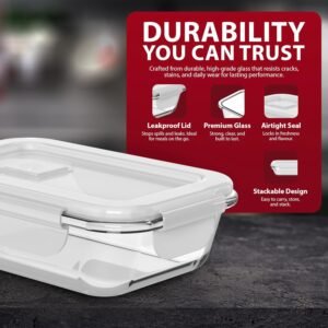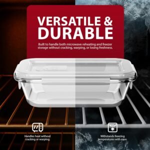 • VIDRIO DE BOROSILICATO DURADERO Y RESISTENTE AL CALOR - Fabricados con vidrio de borosilicato de alta calidad, estos recipientes son resistentes, duraderos y resistentes a los choques térmicos. Utilícelos con confianza en el horno (sin tapas), microondas, lavavajillas o congelador para una comodidad sin estrés.