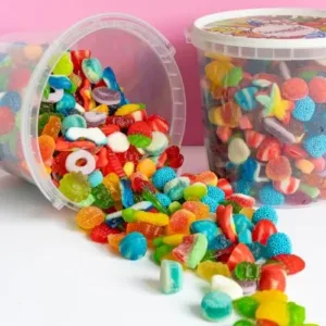 The colourful candy mix consists of both sweet fruit gums and sour, pack a few soft marshmallows and you have a mix in no time where everyone can find something that tastes to them. Throwing a party where everyone agrees with the snacks has never been so easy. Simply close the bucket again when the snacking is over. So the sweets stay fresh longer.